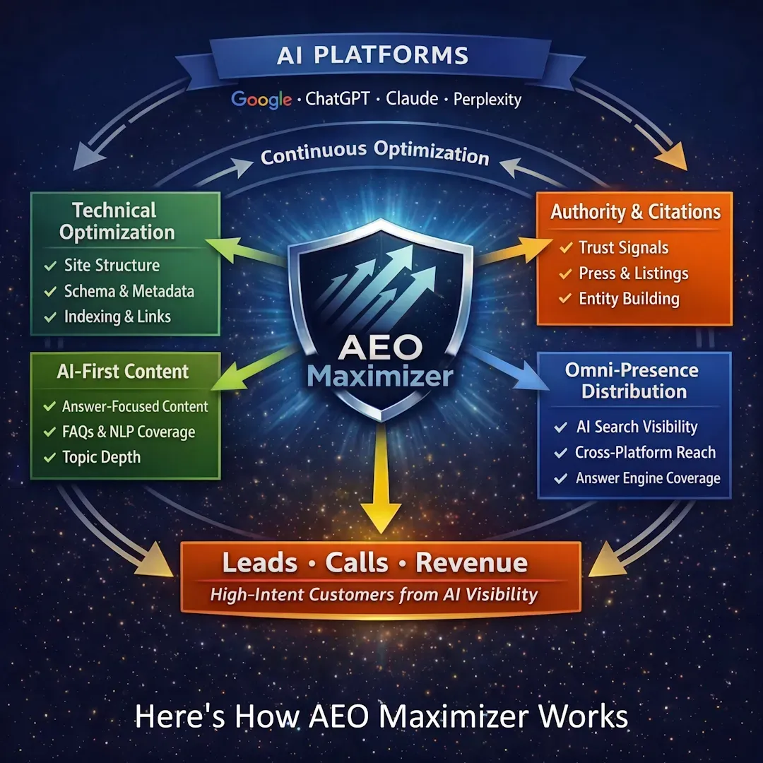 A 5-part Done-For-You system that positions your business across every major AI search platform.
